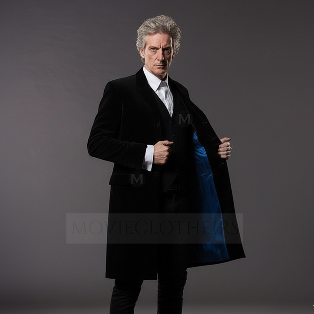 This iconic 12th Doctor Who coat channels the commanding style of Peter Capaldi’s Time Lord. The 12th Doctor black velvet coat is made from rich, premium velvet with a distinctive deep red lining, capturing the refined gothic flair of the character’s later seasons.