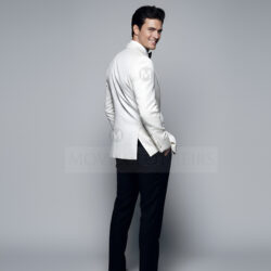 This striking James Bond white tuxedo jacket made its appearance in Spectre during the glamorous train scene in Morocco. As Bond dines with Madeleine Swann and later engages in an intense fight sequence with Mr. Hinx, the crisp ivory dinner jacket holds its shape and symbolism — clean, sharp, and composed under pressure. The contrast of the white tuxedo against the dim train interiors created one of the most iconic visual moments of the film.