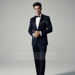 A refined blend of modern sophistication and classic tailoring, the James Bond blue suit from Spectre is a standout piece in 007’s wardrobe. Crafted from a lightweight wool with a subtle Prince of Wales check, this single-breasted suit features notch lapels, straight shoulders, and a sleek silhouette tailored to perfection. The jacket is paired with slim, flat-front trousers — both elements offering a polished look suitable for both covert missions and high-profile events.